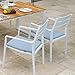 HIGH-GRADE ALUMINUM FRAME: Made from extruded powder-coated aluminum tubing, the sturdy frames used for this kind of dining chairs are highly durable and sturdy for outdoor use. Aluminum dining chair set is much lighter than metal dining chair set but not so light to be blown away in windy days.