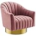 CHANNEL TUFTED - Graceful curves, vertical channel tufting and gold accents add visual depth to this armchair. Bring plush comfort and elegant vintage glamour into your decor with Buoyant