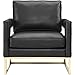 Designed With A Modern Sensibility: This Chair In The Avery Collection Includes A Classically Colored Black Leather Upholstery With Contrasting Metallic Gold Legs That Create A Chair That Makes A Lasting Impression.