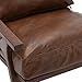 Package contains one mid-century accent chair with walnut finish wood frame and faux leather back and seat cushion in brown.