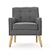 MID-CENTURY MODERN: Blending together iconic splayed legs with beautifully tufted upholstery, our club chair offers a mid-century look to your lounge space. With its clean lines and understated look, this chair uses new materials to reimagine a traditional design. Seat height: 17.75 inches