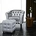 With its tufted and studded detailing and gracefully curved arms, this armchair and footrest set will add a touch of luxury, class and style to any interior. The thickly padded seat is highly comfortable, while the wooden structure is sturdy and durable