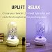 CUSTOMIZABLE EXPERIENCE: Customize the way you fall asleep, wake up, or relax during the day. Program this diffuser to glow one color, or show an array of its ambient lights. Doze off or wake up to one of its 6 relaxing nature sounds. Or, sync your device via Bluetooth to play your personal music list. Program the alarm to wake you to your music or nature sounds. You can even program it to wake you to light and sound