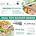 DUAL TIP MARKER DESIGN - The double tips allows you switch each tip freely to use.The fine tip marker (0.4mm) can help artist to focus on details, outlining, sketching and drawing. The brush marker tip (1-2mm) with the different brush tip strokes can draw the thick, make the calligraphy, design, journaling, lettering, adult kid coloring and more.