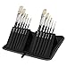 Synthetic short handle brush set for all acrylic painting needs, from fluid to heavy body; includes a zippered black travel brush organizer