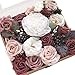 About Package: All the fake flowers you purchased will be sitting nicely in a rustic style box with an aroma card inside to add a light yet pleasant floral fragrance. These artificial roses can be taken out easily for your own decoration projects or readily used as gifts for your loved ones thanks to the well-thought packaging.