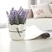 Boasts a sleek and clean white ceramic pot sweetly housing a faux lavender plant in full bloom with realistic purple flowers