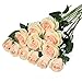 [High Quality and Realistic Looking] The artificial flowers are made of high quality fabric material by excellent technique, which makes the fake flowers looks very real. The artificial flowers and leaves of the bouquet shows nature color neither rigid nor dull, which makes them more lifelike. They wont fading for a long time.