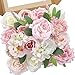 👰【Pink Roses Artificial Flowers Set】A combo pack of different types of flowers and colors as a theme. Handmade silk roses artificial flowers to create wedding shower decorations, floral arrangement, bridal & bridesmaid bouquet, centerpieces, boutonnieres, corsage, etc.