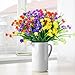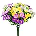 FULL SIZE: You will get 10 bundles of fake outdoor plants. 2 bunches of each color. Each bouquet has 7 flexible stems and bushy leaves. Each measures 13 inches high x 9.5 inches wide. With removable flowers and adjustable stems, you can mix and match the look you want. If the flower falls off the branch, simply plug it back into the stem!