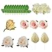 PACKAGE - The flower cake toppers kit includes 2 pieces white roses, 2 pieces creamy white Hydrangea, 1 piece vintage champagne rose flower, 3 pieces barely pink roses, 2 pieces paper palm leaves and 10 pieces green rose leaves.