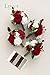 Material: Made of high-quality silk/foam flowers and silk greenery. Silk flowers include dark red Escimo rose, dark red hybrid tea rose, burgundy hybrid tea rose, white vendela rose, dark red petite rose. Foam flowers include dark red rose, white high-centered rose, burgundy high-centered rose, and silver rose. Accessories include pine tree branches, silver berries, red berries, silver pine tree floral pick, and hazelnut leaves.