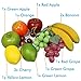 HIGH QUALITY & REALISTIC: Lifelike color, surface and size. Looks just like the real thing. Each set comes with 1 Red Apple, 1 Green Apple, 1 Yellow Lemon, 1 Green Lemon, 1 Orange, 1 Green Grape bundle, 1 Purple Grape bundle, 2 Bananas and 3 Cherries.