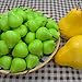 28PCS mini fruit pear (excluding plate). It is only 1.18 inches long and 1.25 inches wide, with vivid appearance and bright colors. It is a miniature version of ordinary fruit and looks very cute. You can use it with big fruit for home decoration
