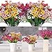 Easy to Use: these outside artificial flowers are hand woven and pieced together to give each bouquet an exquisite look; When opening, some flower heads may fall off, if any petals fall off, don't worry, just insert it back into the stem; Each bouquet is thick and resilient, easy to wash and store