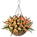 【Unique Design】- Flower bouquets with hanging basket design, simple and stylish, with orange bouquets, will become elegant fall decorations for home.