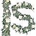 【Quality material】Each fake vines eucalyptus garland is 5.9ft/180cm long with 128 leaves. The leaves are 2.2in*2in. Our eucalyptus garland greenery each leaf is made of high quality silk and the stems are made of plastic coated iron wire. They are lifelike and durable with frosted green color without maintenance.