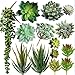 Quantity: 19 Pcs Assorted Artificial Succulents in Bulk include artificial string of pearls plants, faux yucca pick, faux flocked sedum hops stem, faux echeveria succulent pick, faux flocked pachyphytum stem, artificial molded wax agave stem, faux burro's tail stems, faux jelly bean stem, faux spiky aloe stem, artificial air plant, artificial aloe stem, faux flocked echeveria, and faux sedum pick.