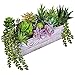 Size: Faux potted succulent plant arrangement measures about 11.4" x 3.7" x 10.6" (LxWxH). The rustic wood planter measures about 11.4" x 3.7" x 3.7" (LxWxH). With the right size for tabletop use, this potted succulent arrangement is perfect for accenting table, shelf, windowsill, countertop, and mantel. This artificial potted succulent garden makes great centerpiece on dinner table and coffee table.