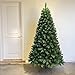 PRE-DECORATED DESIGN: Made with 250, 550, and 900 incandescent lights (based on tree size), with pine cones and artificial berries evenly dispersed throughout partially flocked branches to create a natural look that brings a feel of the outdoors into your space