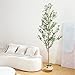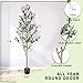 【Lifelike Simulation】This 6ft artificial olive tree is carefully crafted to mimic the appearance of a live olive tree, looking as close to reality as possible. Single trunk splits into several stems, adorned with 1176 olive leaves and dozens of olive fruits, this faux olive tree creates a dramatic impression of beauty, longevity and elegance. Clearly textured olive leaves and vivid color makes this fake tree a timeless seasonal home decor.
