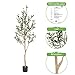 【Lifelike Simulation】This 6 feet artificial olive tree is carefully crafted to mimic the appearance of olive tree, looking as close to reality as possible. Single trunk splits into several stems, adorned with dozens of olive fruits, which made of rubber silk fabric. Clearly textured olive leaves and vivid color makes this fake tree a timeless seasonal home decor and will definitely make you feel the existence of nature.