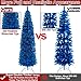 [ 5 Ft Pre-Lit Artificial Christmas Tree ] This Natural Looking Artificial pencil Christmas Tree is 5 feet tall with a 1.5 ft base diameter, with 380 branches tips that make the tree look bushy and thick. The branches are bendable and can be adjusted into the tree shape you like. Available in 4 colors: red, white, spruce green, and blue. Note: The branches need to DIY unfold and fluff up.