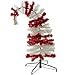 Red & White Tinsel Branch Layers. Branches fold in any direction for easy storage. Made on strong wire to hang most 5lb ornaments. Top of the Tree is made on a thin wire so you can bend at the top of the tree. The wire is bendable at the top. Green Metal Base Included. Stand collapses for easy storage.