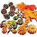 PACKAGE INCLUDED - 6 x Artificial Pumpkin (in different shapes and sizes), 1 x Artificial Corn, 2 x Red Berry Cluster, 5 x Mini Faux Pomegranate, 2 x Fake Chestnut, 2 x Mini Fake Acorn, 1 x Fake Pine Cone, 30 x Fake Maple Leaf