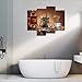 4 panels big gallery wrapped decorative pretty brown canvas paintings wall art prints ready to hang for home decorations wall decor. Each panel has a black hook already mounted on the wooden bar for easy hanging out of box.