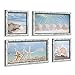 Seashell Pictures Wooden Artwork Framed - Starfish & Shell on Beach Painting Prints Wall Art for Bathroom, 12” x 12”x 4 PCS