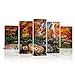 Autumn Waterfall Landscape Canvas Artwork Size:12x20inchx2pcs+12x28inchx2pcs+12x32inchx1pc(30x50cmx2pcs+30x70cmx2pcs+30x80cmx1pc)