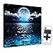 High Definition Moon Canvas Print: Ocean landscape led canvas wall art is waterproof, vivid colors lasting for years. Amazing artwork bright moon wall art starry night ocean sea pictures, include fashion,retro,contemporary,modern style,is a good wall decorations,also as a perfect night lights. Ocean canvas print pictures galaxy wall art canvas under the moonlight not only beautify your home, but brighten up your night. The darker the rooms, the more beautiful the moon appears.