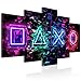 💙Neon Gaming Canvas Framed Painting:This is a small size 5-piece neon painting wall art gaming canvas wall art with five panels combined into a whole.All five canvases have a sturdy frame and basic tools (it has built-in metal hooks and mounting pegs) to place them on the wall for ease of use.These colorful neon game paintings 3D cool gaming prints pictures will get different effects with your creative placement and complement your home.
