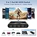 1.8K HDMI Switch 3 in 1 out -- The HDMI Switch 4K 120Hz 3 in 1 out easily sharesaudio & video selector boxes from 3 different HDMI source with 1 HDMI display. Supports IR Remote control switch.Easily switching between seamless transitions. No frequently plugging and unplugging needed.