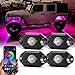 SUPER BRIGHT RGB + PURE WHITE COLORS - Take your offroad game to the next level with our new Bluetooth-controlled Quad-Core RGBW LED rock lights kits. These lights have vibrant RGB colors and pure white light color options and patterns (fading, flashing, music modes, etc.) to dazzle the crowd.