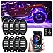 POWERFUL FUNCTION - With quick bluetooth connection design, the 12 pods LED rock light kits offering 16 million colors and you can DIY different lighting scenarios( brightness, color,speed), and change lights follow the rhythm of your music. Designed with PURE WHITE LIGHT, you can also use waterproof 12 pods LED rock light kit as auxiliary lighting too.