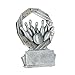TROPHY & PLATE Details; 4.75” tall; 2.5" x 1" gold finish plate; 3 engraving lines; up to 30 characters and spaces per line; silver tone with gold finish accents