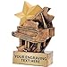 UNIQUE DESIGN: Features a large gold star rising with other small stars and a black base.