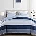 ★REVERSIBLE DESIGN –Fancy Pattern: Nordic wide stripe, white, grey and navy patchwork print on the one side, and baby blue shade color prints on the other side. Elegant geometric printed pattern infuses your space with harmony and brings you calm and comfort; Stylish Box-Stitching: It will keep the duvet insert from shifting or clumping in order to keep you feel more comfortable during sleep. (Be aware that there might be different fringe orientations of pillow shams between different batches.)