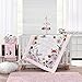 TWO ADORABLE DESIGN OPTIONS: Enchanting roses grace the front of the baby floral comforter and the baby girl crib changing pad cover, in soothing hues of pink and gray. The pink bed girls quilt reverses to a gray vine design, which matches the fitted crib mattress sheet.