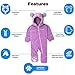 All over print design; Ring snap zipper guard; Ankle to chin side zip up for easy dressing; Reversible fold over mitten cuffs to prevent scratching; Grippers on soles for slip and fall prevention