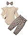 Cute Baby Girl Summer Clothes:Funny print on the front of ruffle-sleeve romper, pair with floral leopard pant and headbands. Cute 3 pieces outfits, make your baby more attractive and fashionable.