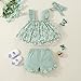 ❀ Brigh design: Summer baby girl clothes outfits in various colors and style for your choose. Pink/Blue/Yellow/Green infant Outfits. Ruffle unique Shoulder design with Floral Pattern top set and adorable elastic waistband shorts set with headband for baby girl, make your sweet girl more attractive.very cute and charming!