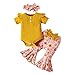 🌸 Package: The baby girl set includes 1 short-sleeve romper, 1 pair of floral bell bottoms, and 1 bowknot headband. This adorable 3-piece summer clothes set will make your baby girl receive countless compliments and won't want to take it off.