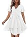 Features: Short sleeve, v neck, wrap dress, strap tie waist, double layer, ruffled hem, mini dress