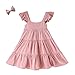 BABY GIRL LINEN RUFFLE DRESS: Infant girls breathable playwear dress with cute design of ruffle sleeve, round neck and three layers pleated twirl dress, a great gift for your baby's birthday, match with adorable bow knot headband.