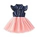 BABY GIRL DENIM DRESS: Infant Girls Breathable Playwear Dress With Cute Design Of Lace Mesh Puff Sleeve, A Great Gift For Your Baby's Birthday.