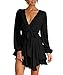 ★Features: Deep V-Neck, tie waist, back zipper closure, long sleeve, flare hem, high waist, regular fit bodice. Mini dress, short dress, skater dress, party dress, fit and flare dress, ruffle dress, casual dress.