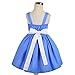 Sleeveless bodice with tank straps and a mini ribbon bowknot on semi sweetheart neckline. A cute apron attached at waistline. Knee length skirt with a back tie sash.